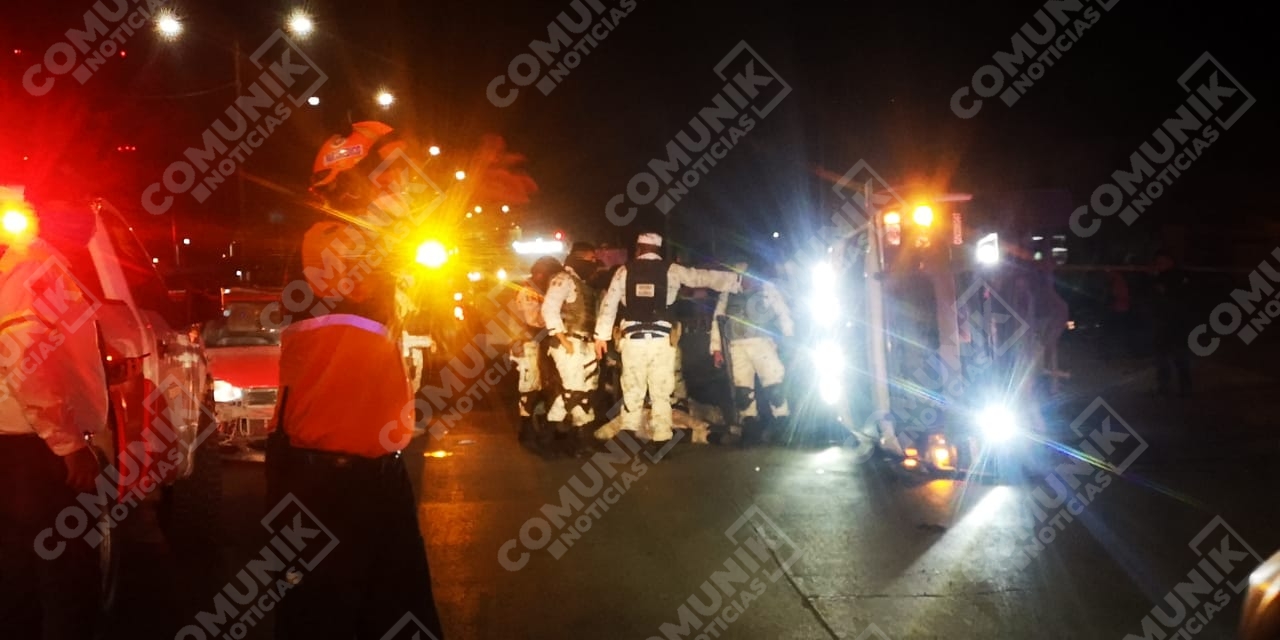 Irapuato.- Una mujer que perdió el control de su vehículo, brincó el camellón del bulevar Solidaridad frente a la localidad Rancho Grande en Irapuato y chocó contra una patrulla de la Guardia Nacional, la unidad oficial volcó y al menos tres elementos resultaron heridos.