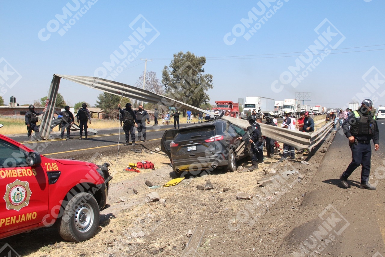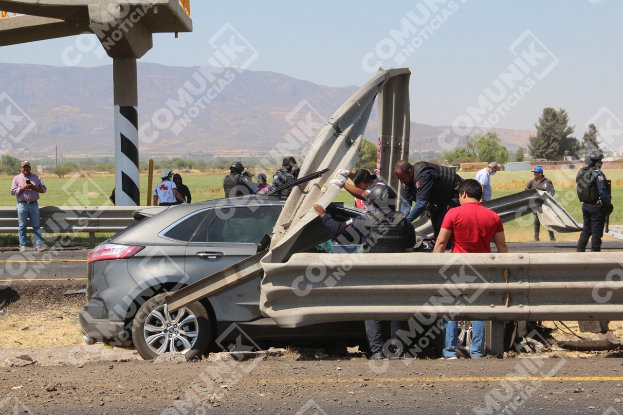 Las personas accidentadas viajaban en una SUV Marca Ford Edge, color gris y con placas de circulación del Estado de Guanajuato.