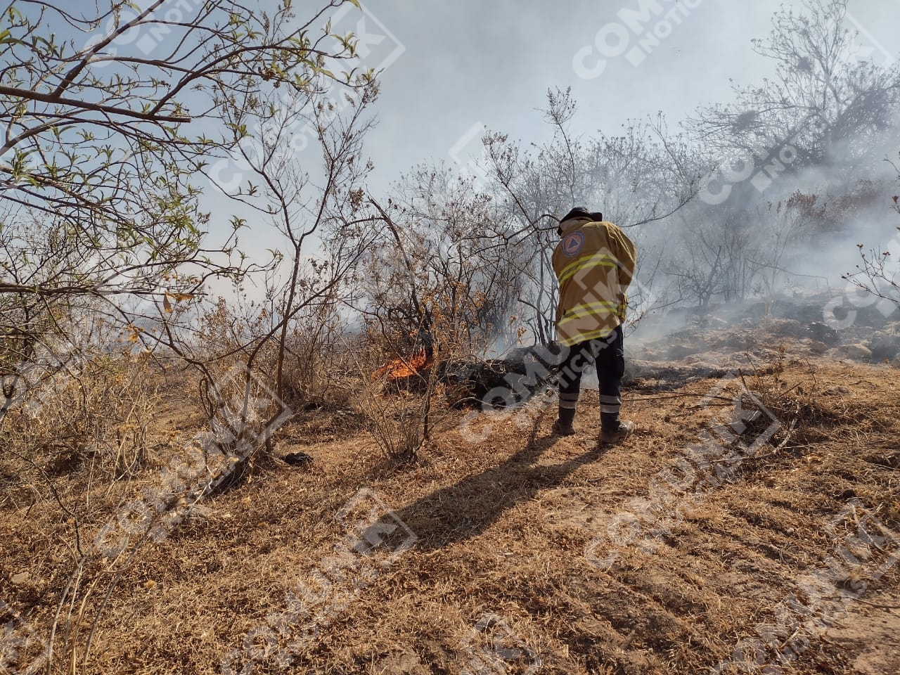 Pénjamo, Gto.- Elementos del Cuerpo de Bomberos y de la Unidad Municipal de Protección Civil, atendieron y controlaron un incendio provocado en la parte baja de la Sierra de Pénjamo, cerca de la comunidad Churipitzeo.