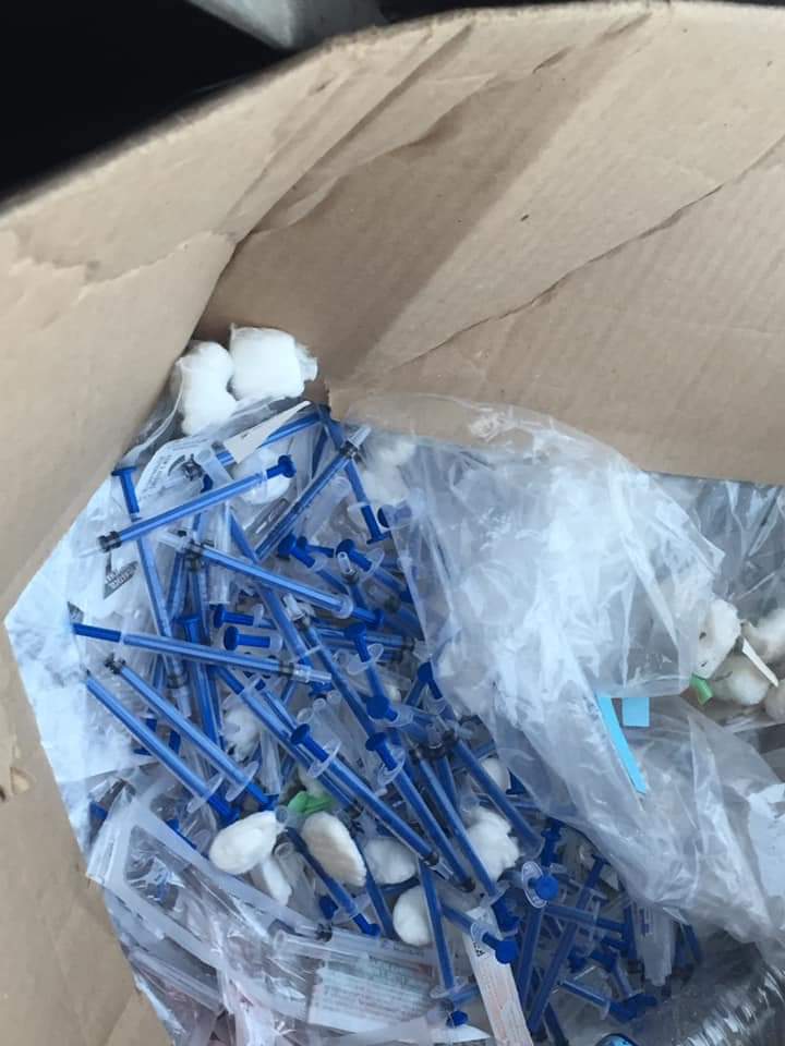 Guanajuato, Gto.- En Guanajuato capital, personal de intendencia de la Secretaría del Bienestar ubicado en Marfil, tira en contenedores de basura, las jeringas que fueron utilizadas para la aplicación de la vacuna anti-covid, violentando la Norma Oficial Mexicana en la materia y generando un foco de infección.