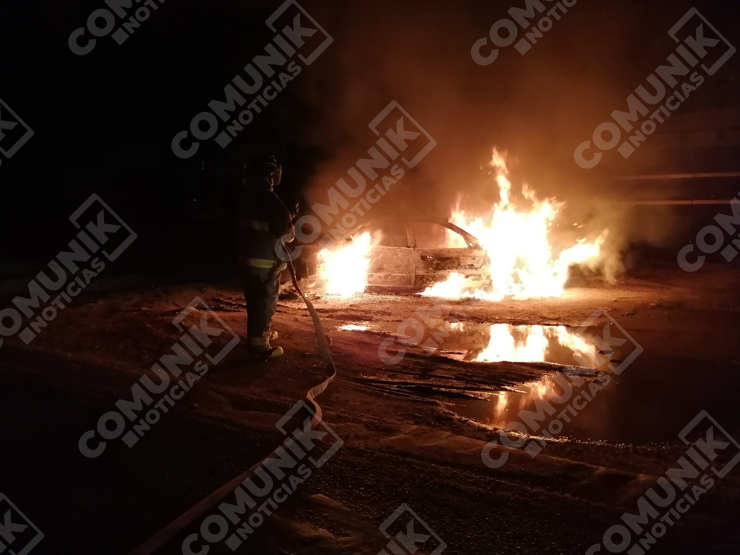 En el lugar encontraron un vehículo en llamas, un sedán de color negro de la marca Dodge Neón, el cual estaba incendiado por completo.