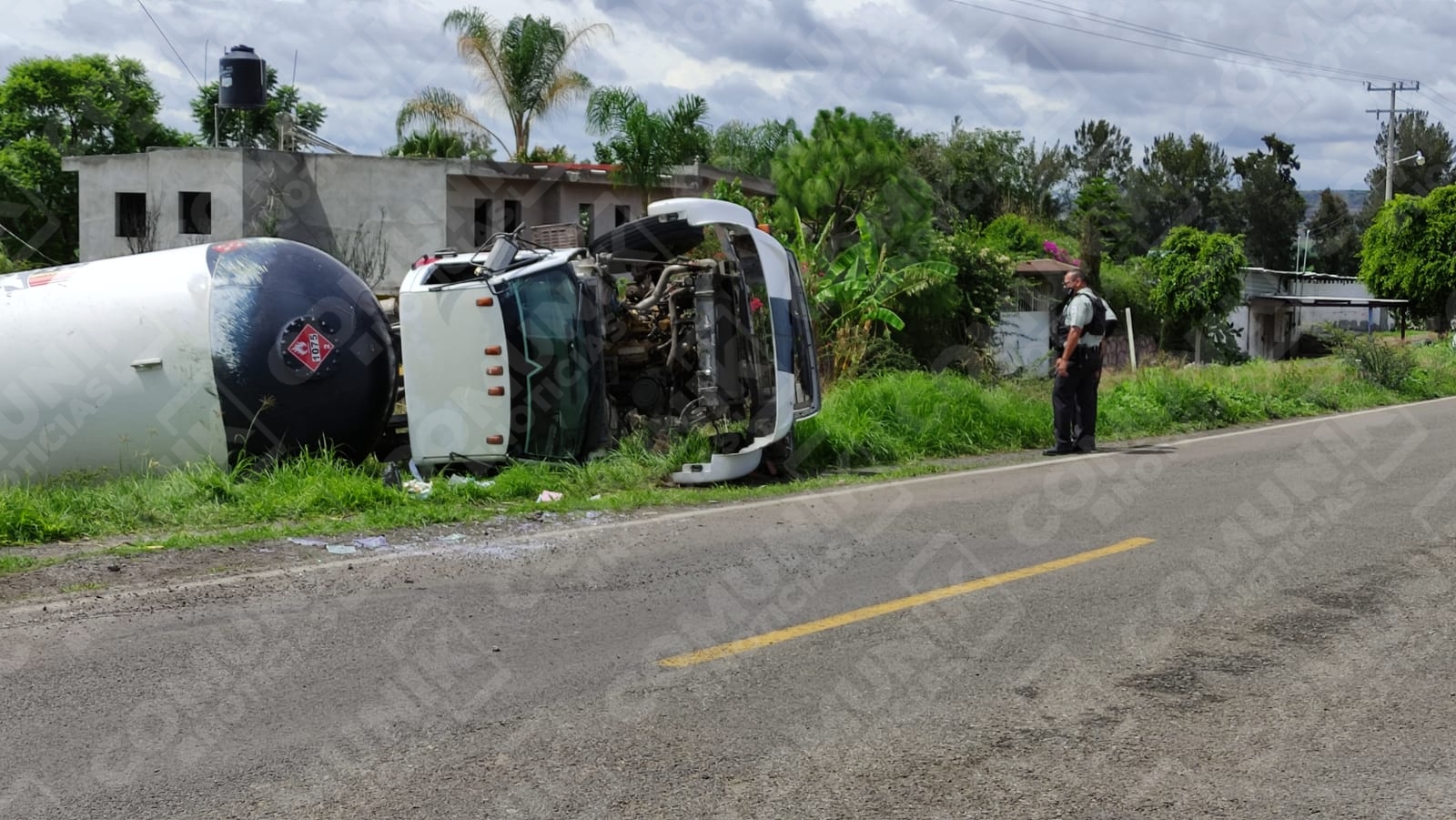 Se accidentan pipa cargada con gas, en Pénjamo