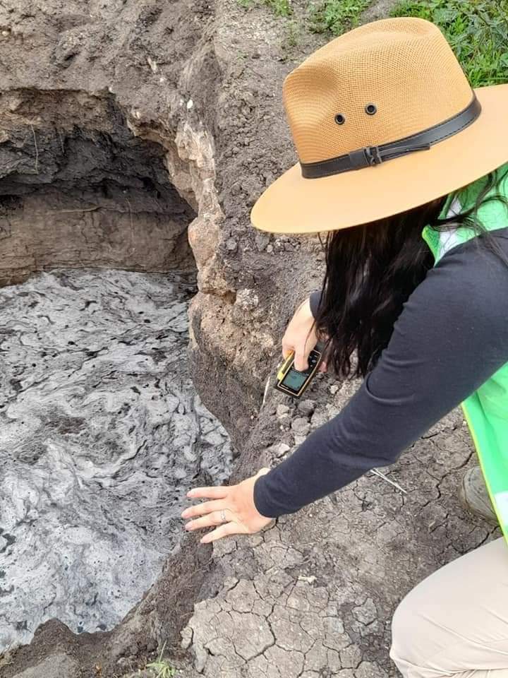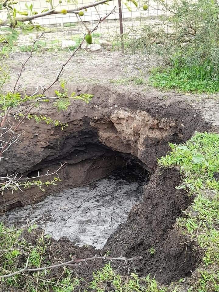Así mismo, a unos 50 metros de distancia, se localizó un hundimiento con un diámetro aproximado de 70 por 60 centímetros y una altura de 83 centímetros.