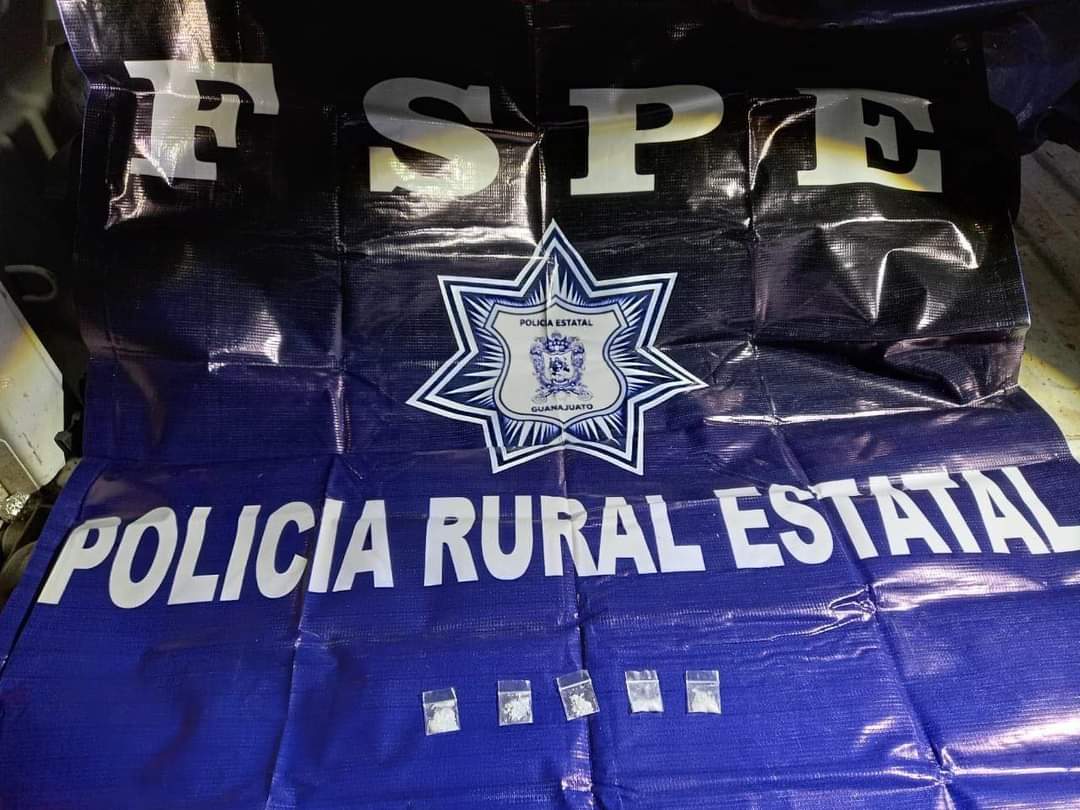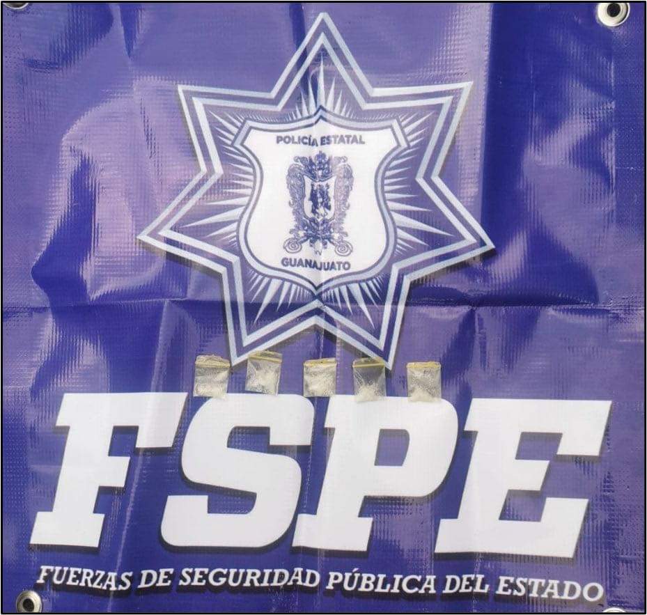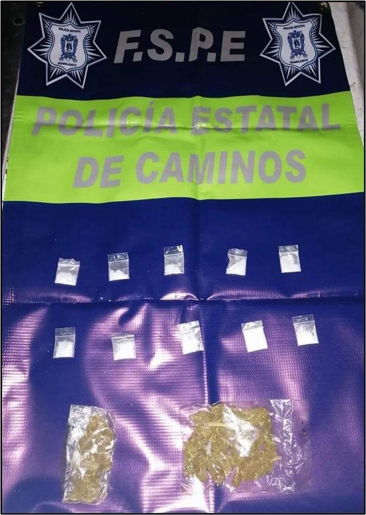 En el municipio de Irapuato, elementos de la División de la Policía Estatal de Caminos (PEC) al patrullar sobre la carretera 45D, a la altura de la Central de Abastos de dicho municipio, tuvieron a la vista a una persona a bordo de una motocicleta, dicho conductor al presenciar a los elementos estatales aceleró la marcha y metros adelante arrojó una bolsa.