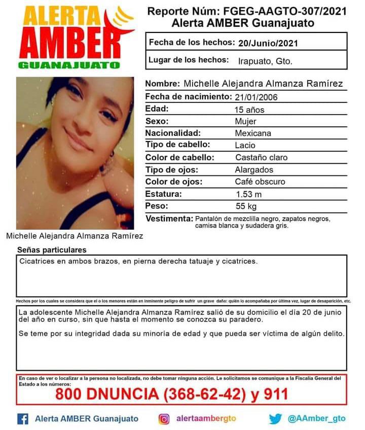 La menor salió de su casa ubicada en el municipio de Irapuato, sin que sus familiares supieran su paradero desde el día 20 de junio del presente año,