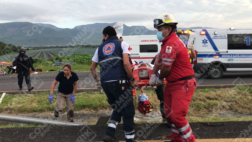 Cuerpos de emergencia de Pénjamo y Abasolo, atendieron a ocho lesionados, cinco de ellos de gravedad, quienes fueron trasladados a recibir atención médica a hospitales de la región.