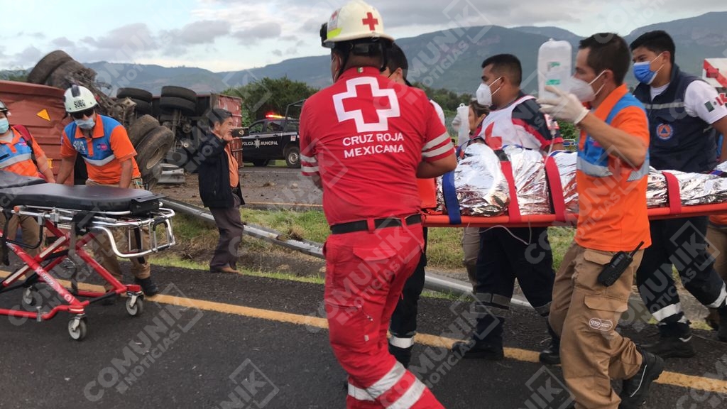 Chocaron de frente un camión de carga que transportaba dos contenedores marítimos y un autobús de pasajeros de la línea Coordinados de Flecha Amarilla que cubría la ruta Ciudad de Mexico-Guadalajara.