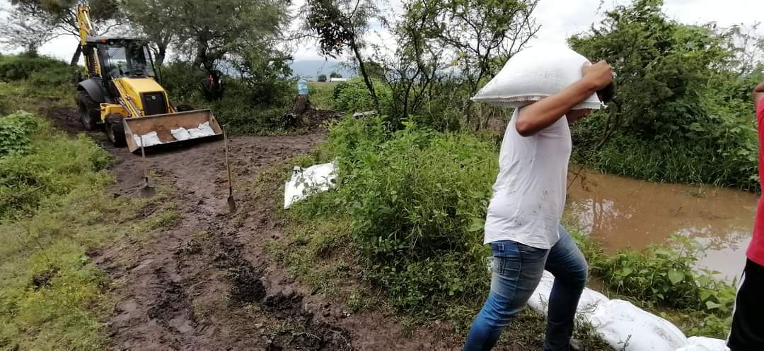En Cuerámaro trabajan para frenar el avance del agua y evitar inundaciones
