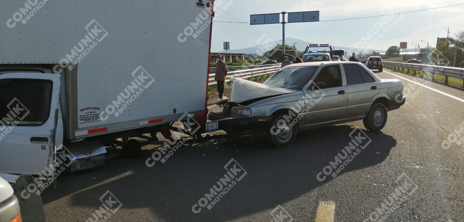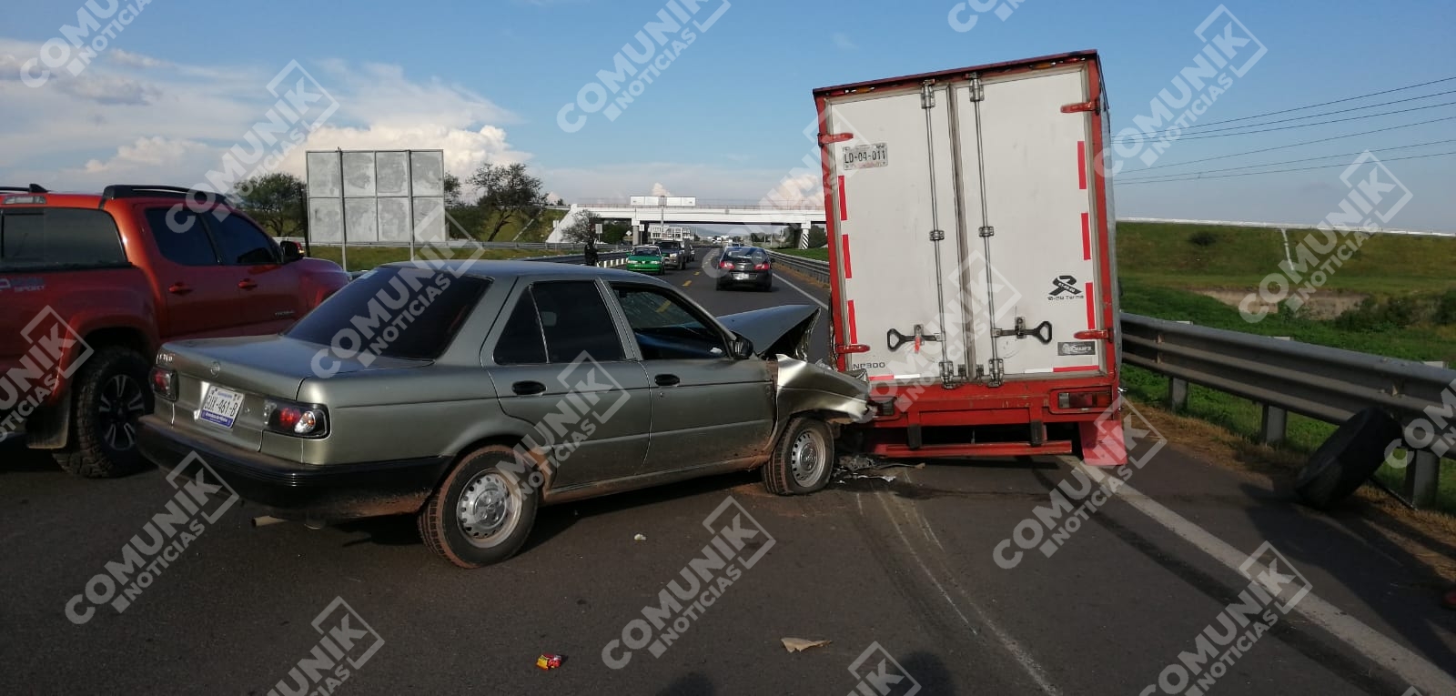 Ella viajaba en un automóvil compacto marca Nissan Tsuru, color arena y con placas de circulación del Estado de Guanajuato, que chocó por alcance contra una camioneta Nissan Np300, con caja seca, a la que se le salió la flecha izquierda con todo y neumático trasero.