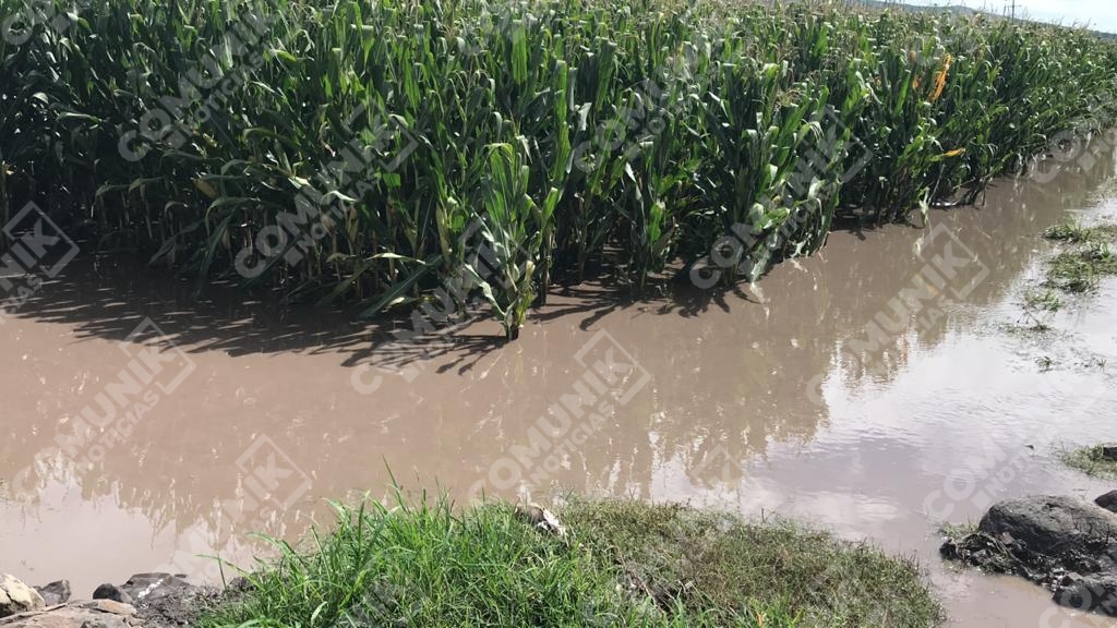 En Charcos de Paúl, el agua afectó más de 300 hectáreas de terrenos de cultivo, donde los ejidatarios ahora temen perder sus siembras.T