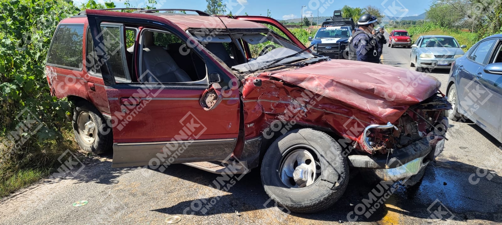 En la camioneta gris viajaba una familia originaria de la comunidad La Paz, resultando lesionados Salomón Orozco Soria de 74 años de edad; Eliza Meza Meza de 72 años de edad; María de la Paz Reyes Orozco de 12 años; Samantha Espinoza Orozco de 7 años y Josefina Orozco Mesa de 33 años.