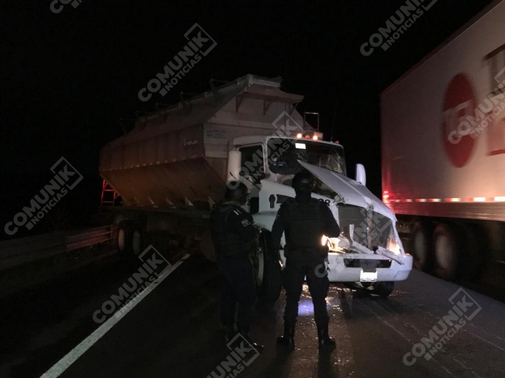 En el lugar, estaba atravesado en la carretera, un camión tipo tortón de la marca Kenworth, color blanco, que regresaba del municipio de Cortazar de llevar un viaje de alimento para cerdos.