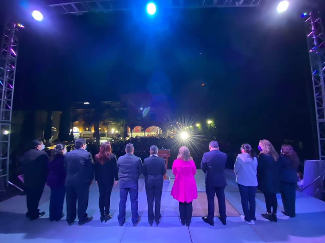 El alcalde Goyo Mendoza, en compañía de su esposa Nancy Rodríguez así como integrantes del Ayuntamiento, disfrutaron en compañía de las familias, estos espectáculos realizados en la Plazuela Miguel Hidalgo.