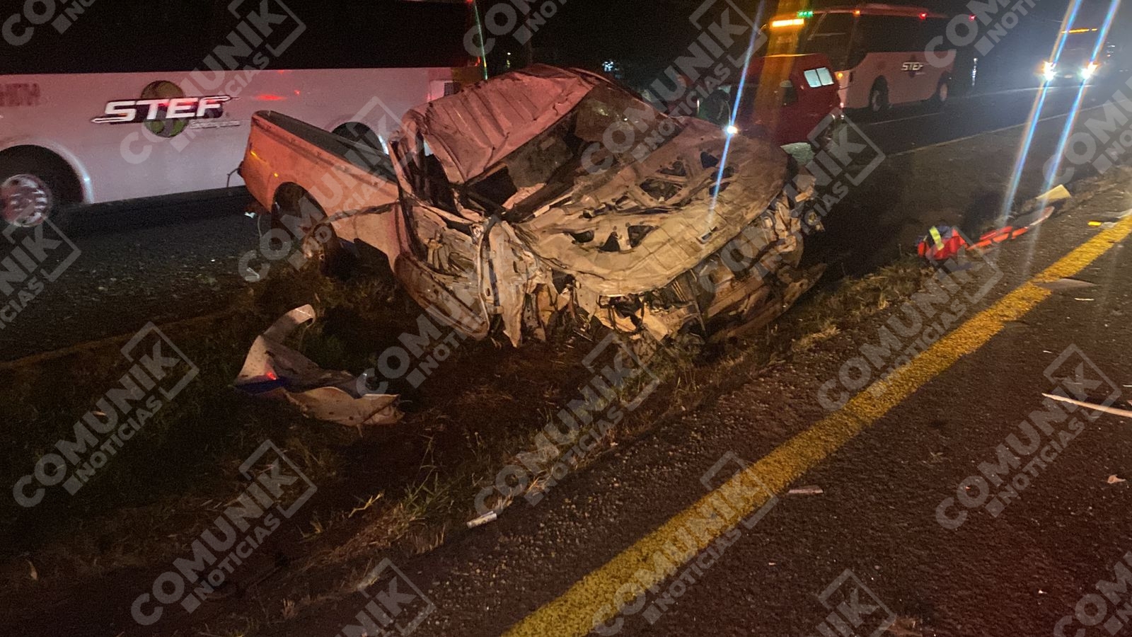 En el lugar resultaron lesionados el conductor de una camioneta de color blanca con razón social de la empresa de seguros Tláloc, la cual choco contra un automóvil de la marca Toyota, color rojo, qué se precipitó a un canal pluvial tras la colisión.