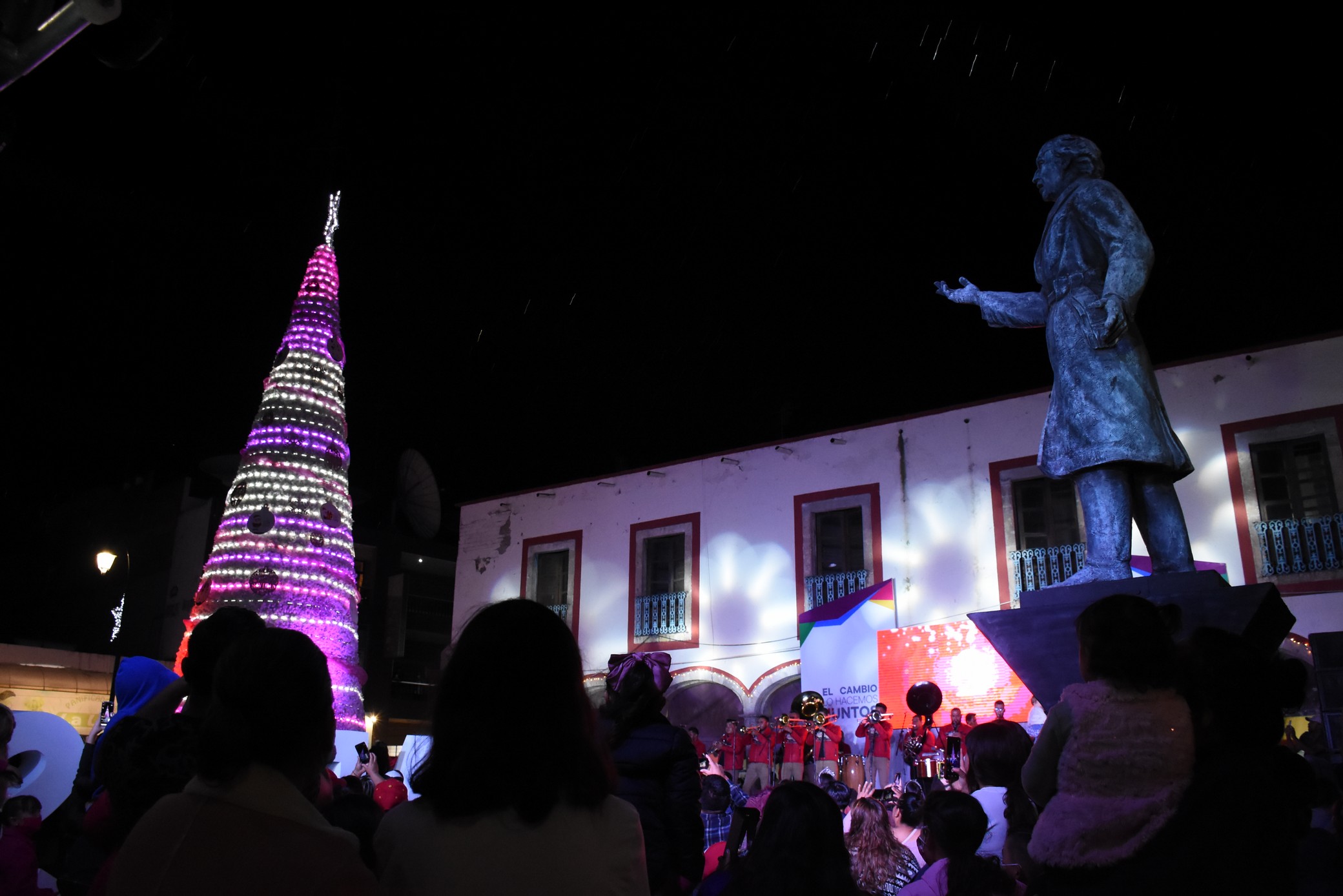 Abasolo, Guanajuato.- En el Centro Histórico de Abasolo se llevó a cabo el evento de Encendido del Árbol de Navidad, en el que la Presidenta Municipal, Rocío Cervantes Barba y el Director del DIF Municipal, Francisco Rodríguez Vega acompañados de sus hijos, desearon una Feliz Navidad a todos los abasolenses, además de hacer la cuenta regresiva para el encendido del Árbol.