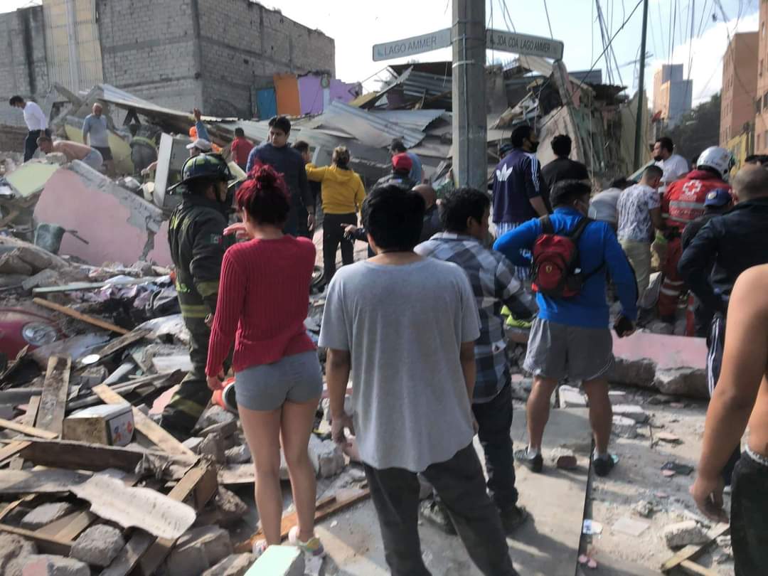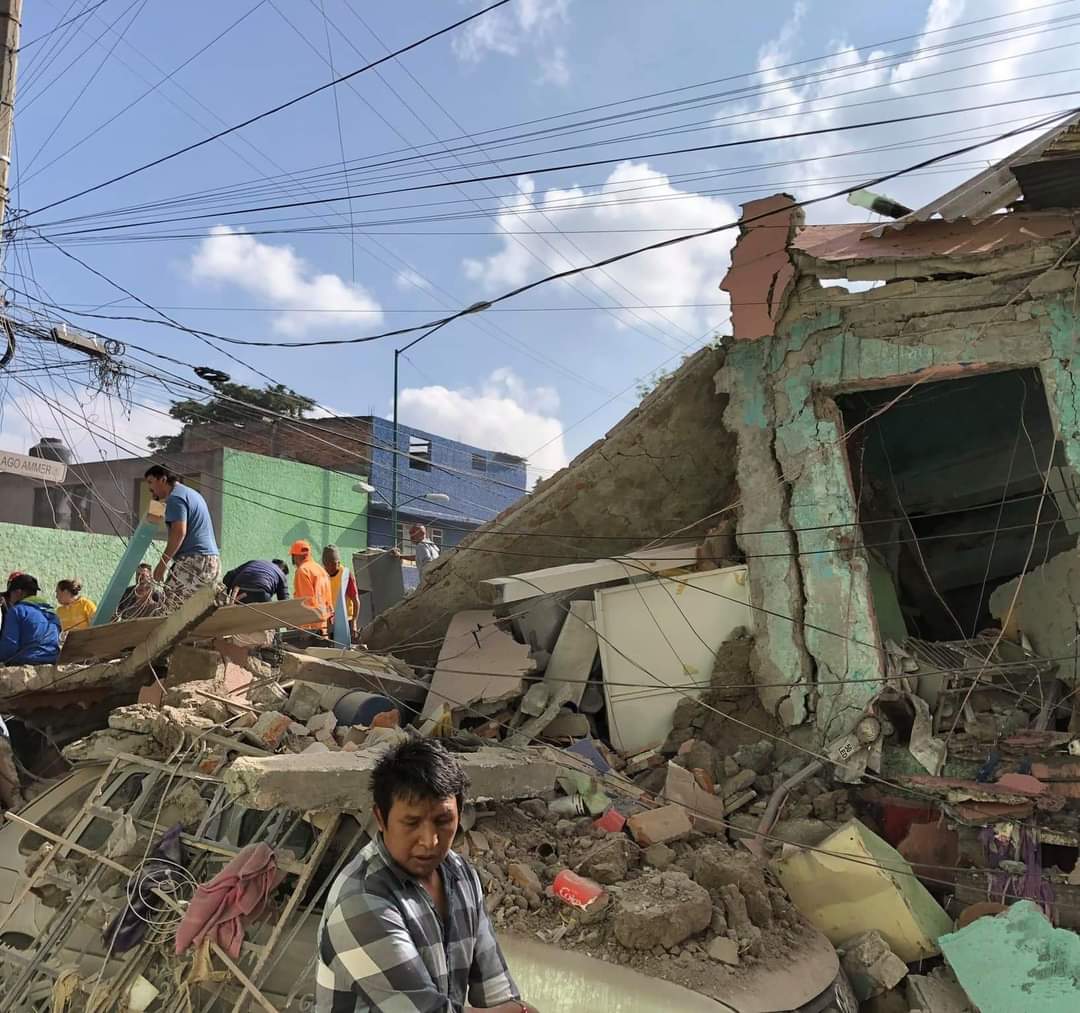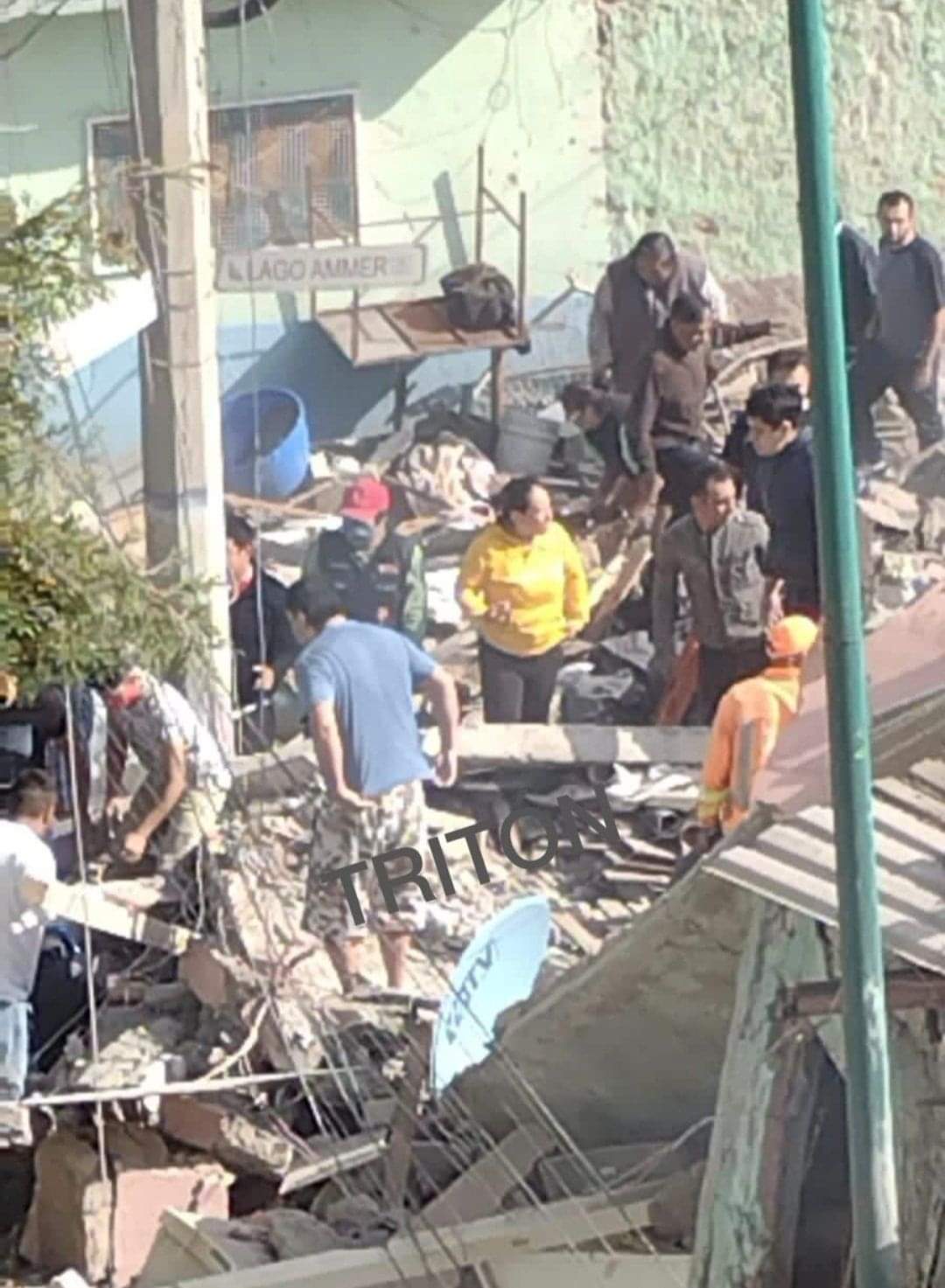 Servicios de emergencia se encuentran en el lugar para el rescate de personas que pudieran estar bajo los escombros.