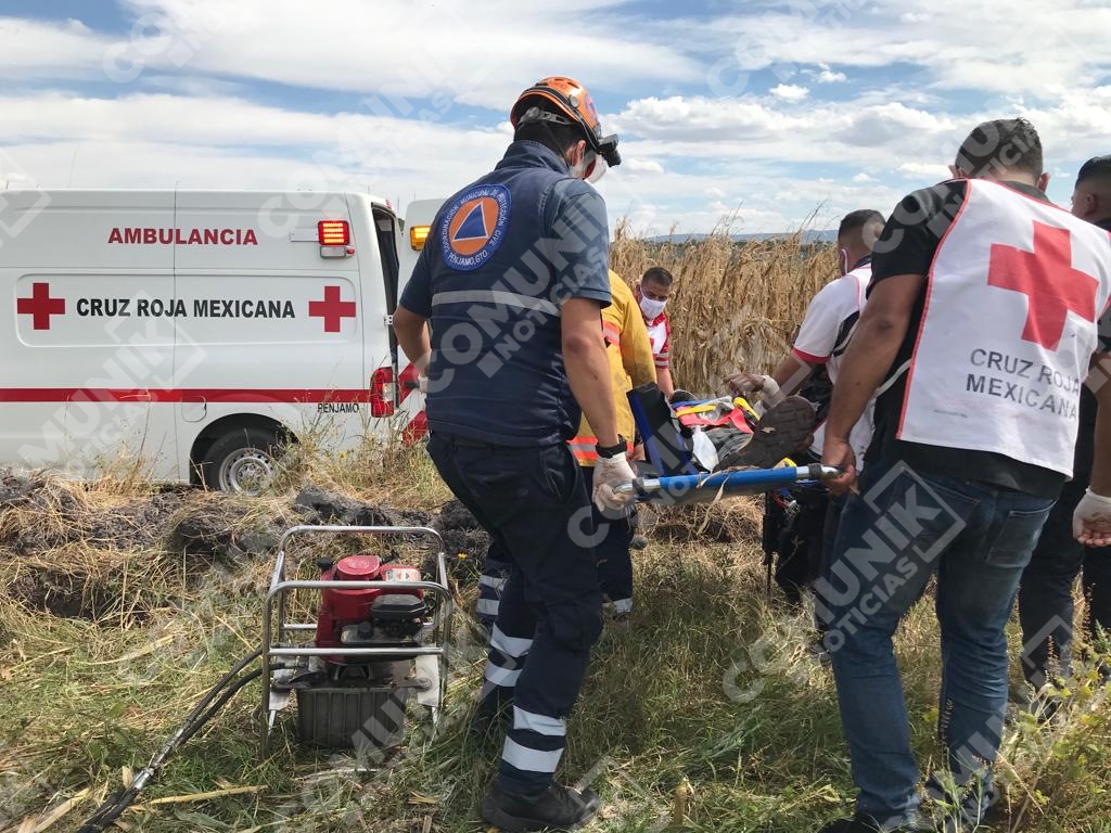 Pénjamo, Guanajuato.- Personal de los cuerpos de emergencias, rescataron a un Jornalero que quedó atrapado en las navajas de una trilladora, entre las comunidades Palo Alto de Abajo y San Fernando de Paúl, en el municipio de Pénjamo.