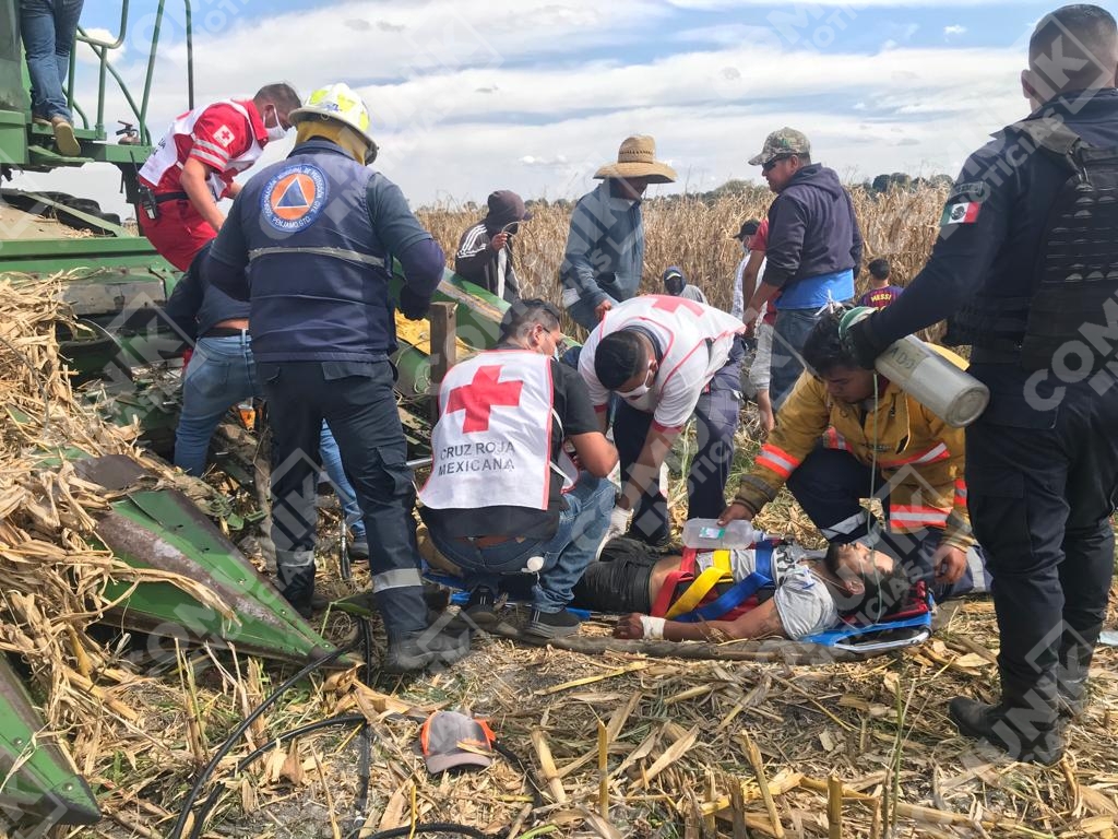 Mientras realizaban la trilla de maíz, Miguel N, de aproximadamente 35 años de edad, fue atrapado entre las navajas de la trilladora, con su pierna derecha.