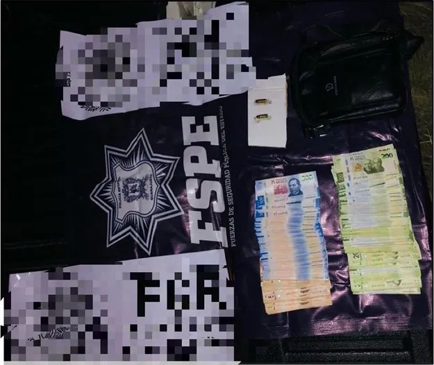 Tras indicarle el alto y aplicarle los protocolos de actuación, le fueron asegurados dos cartuchos útiles calibre .9 milímetros, dos calcomanías con imán con siglas supuestamente de una institución de procuración de justicia, así como 67 mil 600 pesos de dinero en efectivo, en billetes de diversa denominaciones.