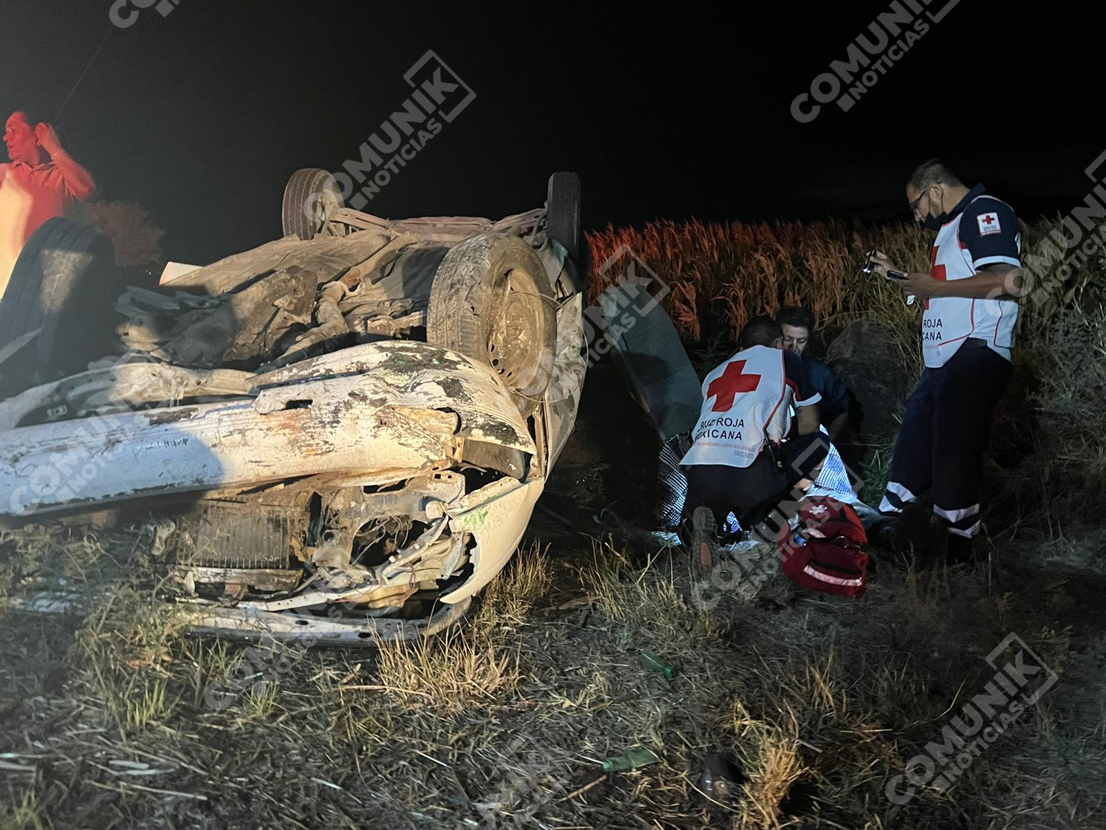 Irapuato, Guanajuato.- Dos lesionados y cuantiosas personas materiales, fue el saldo que dejó la volcadura de un automóvil en la zona rural del municipio de Irapuato.