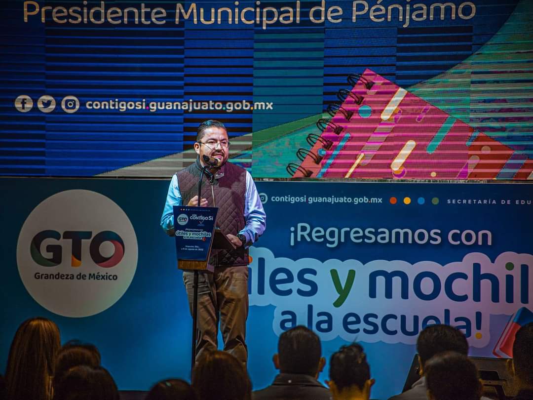 «Hoy fuimos sede regional de la entrega de Útiles escolares y mochilas a más de 16 mil estudiantes de Pénjamo y a más de 620 mil en todo el Estado, gracias a la estrategia CONTIGO SÍ, sumado al PACTO SOCIAL POR LA EDUCACIÓN que encabezó nuestro gobernador Diego Sinhue», señaló el alcalde Goyo Mendoza.
