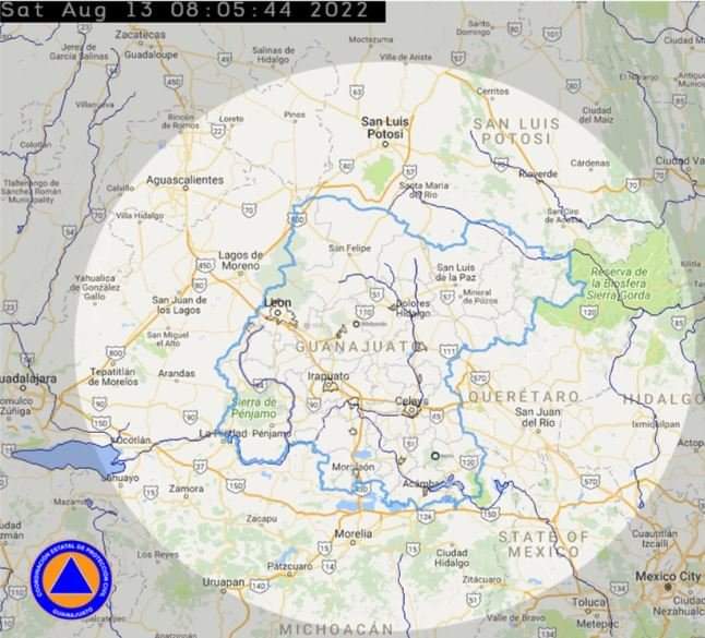En el estado de Guanajuato, se prevé cielo medio nublado por la mañana, con bancos de niebla en zonas serranas, por la tarde, cielo nublado con lluvias fuertes, acompañadas de descargas eléctricas y posible caída de granizo.