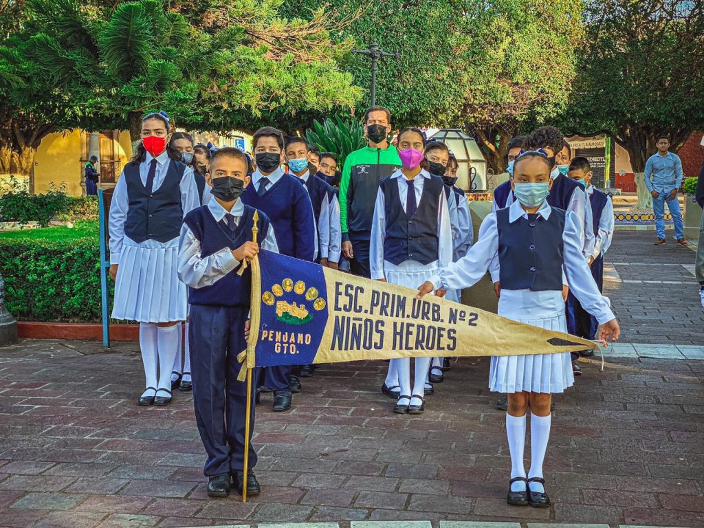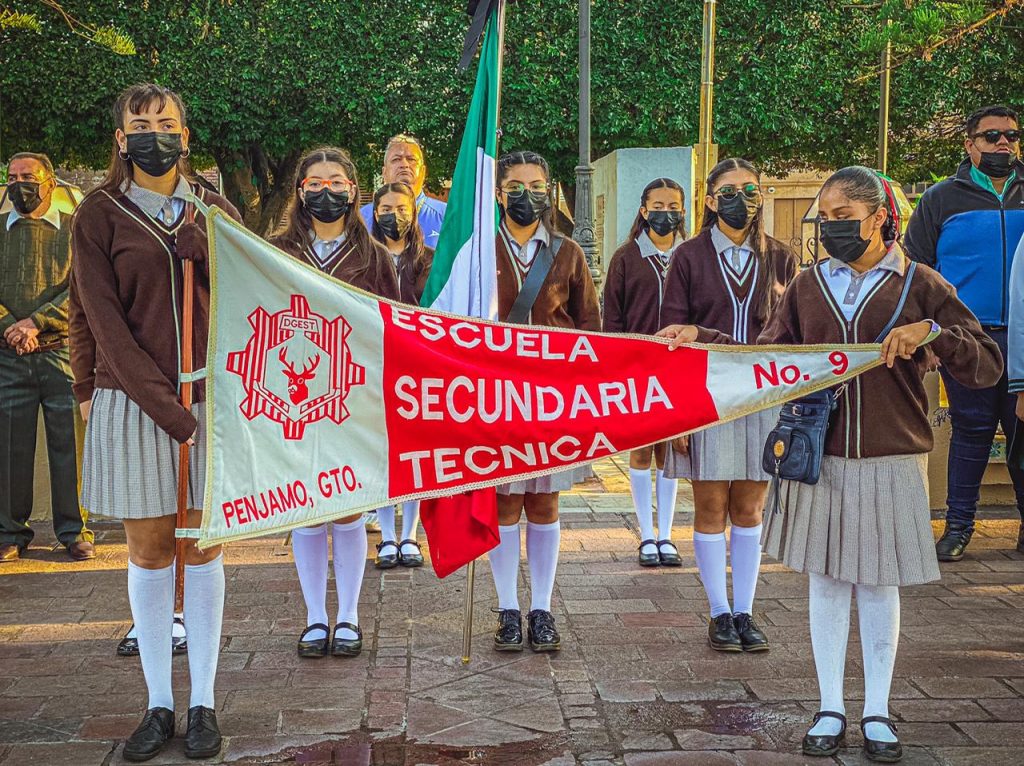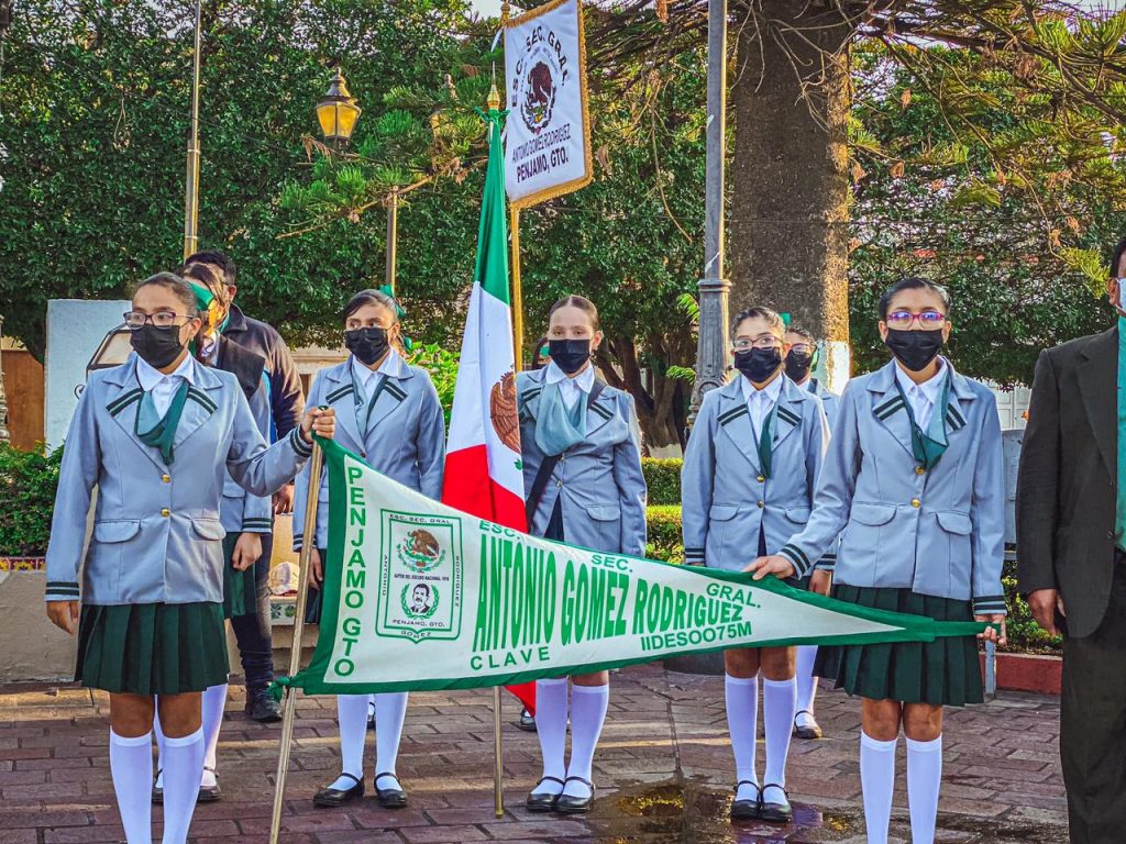 Pénjamo, Guanajuato.- El Ayuntamiento de Pénjamo 2021-2024, en conjunto con escuelas del nivel básico y media superior, rindieron honores a Juan Escutia, Agustín Melgar, Juan de la Barrera, Francisco Márquez, Francisco Montes de Oca y Vicente Suárez, cadetes mexicanos que murieran en la Batalla de Chapultepec contra el ejército de los Estados Unidos de América.