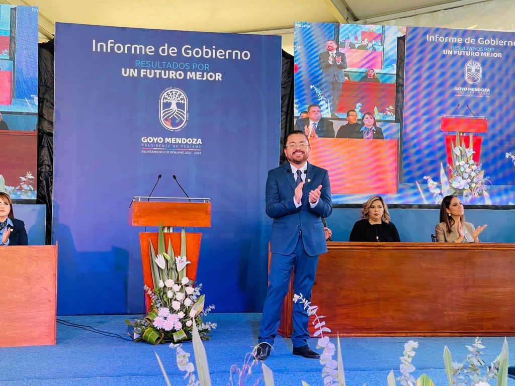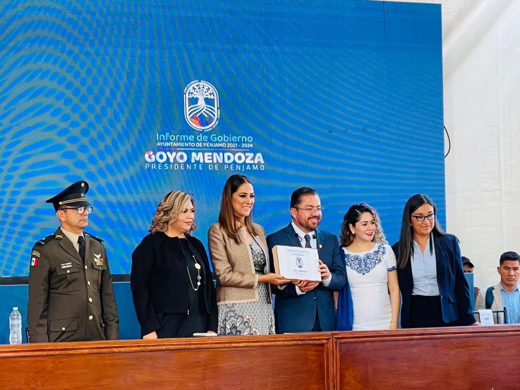 Pénjamo, Guanajuato.- Teniendo como eje principal el empoderamiento del ciudadano, a través del deporte, la cultura, el arte, el autoempleo, el apoyo social y el mejoramiento de la infraestructura, el Ayuntamiento de Pénjamo 2021-2024, que encabeza el Lic. Goyo Mendoza, rindió su primer informe de actividades.