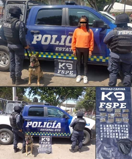 Derivado de las labores de vigilancia que realiza la Unidad Canina K9 de las Fuerzas de Seguridad Pública del Estado fue detenida una mujer en posesión de 161 dosis de mariguana y cristal.