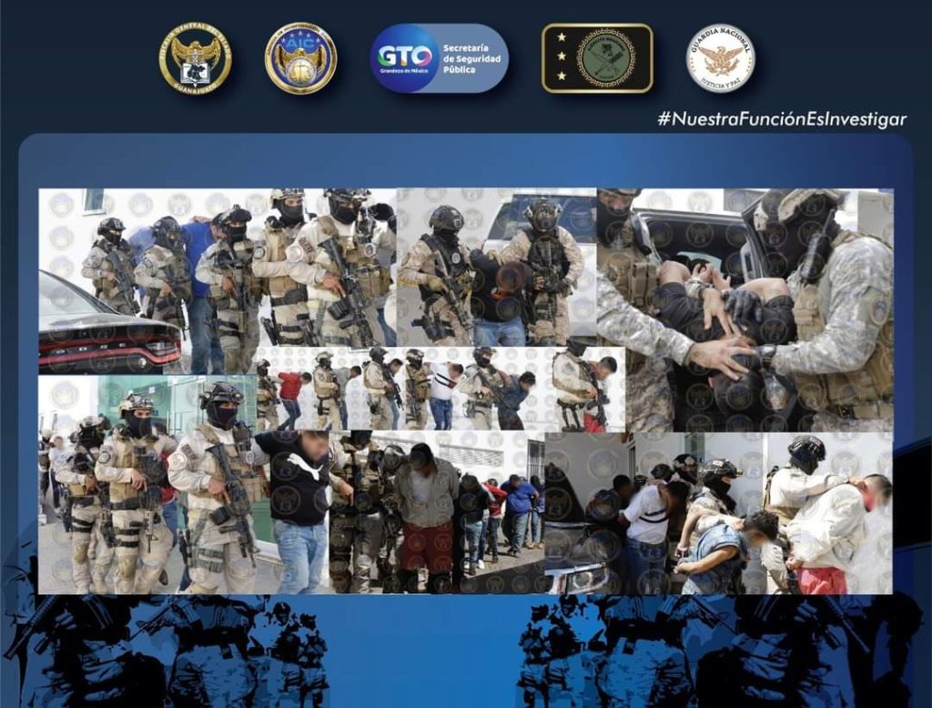 Guanajuato, Guanajuato.- La Fiscalía General desplegó operativos coordinados con el Ejército Mexicano, la Guardia Nacional y la Secretaría de Seguridad Pública del Estado, que dieron como resultado la detención de 71 personas objetivos relevantes, relacionadas a diversos actos delictivos registrados en el estado, y el aseguramiento de armas, bombas y droga.