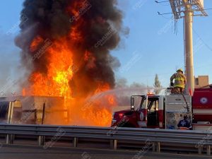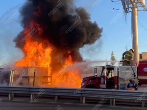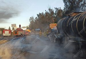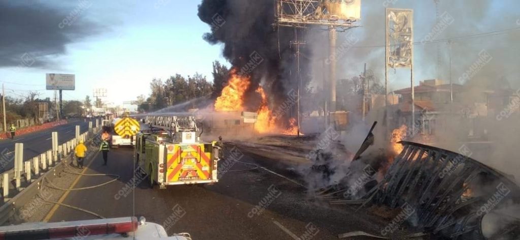 León, Guanajuato.- La mañana de hoy sábado se registró un incendio sobre la carretera Silao-León ala altura de Santa Ana del conde casi en la entrada hacia el municipio de León, donde se incendiaron un tráiler, una pipa y un ducto de Pemex que fue alcanzado por el fuego.