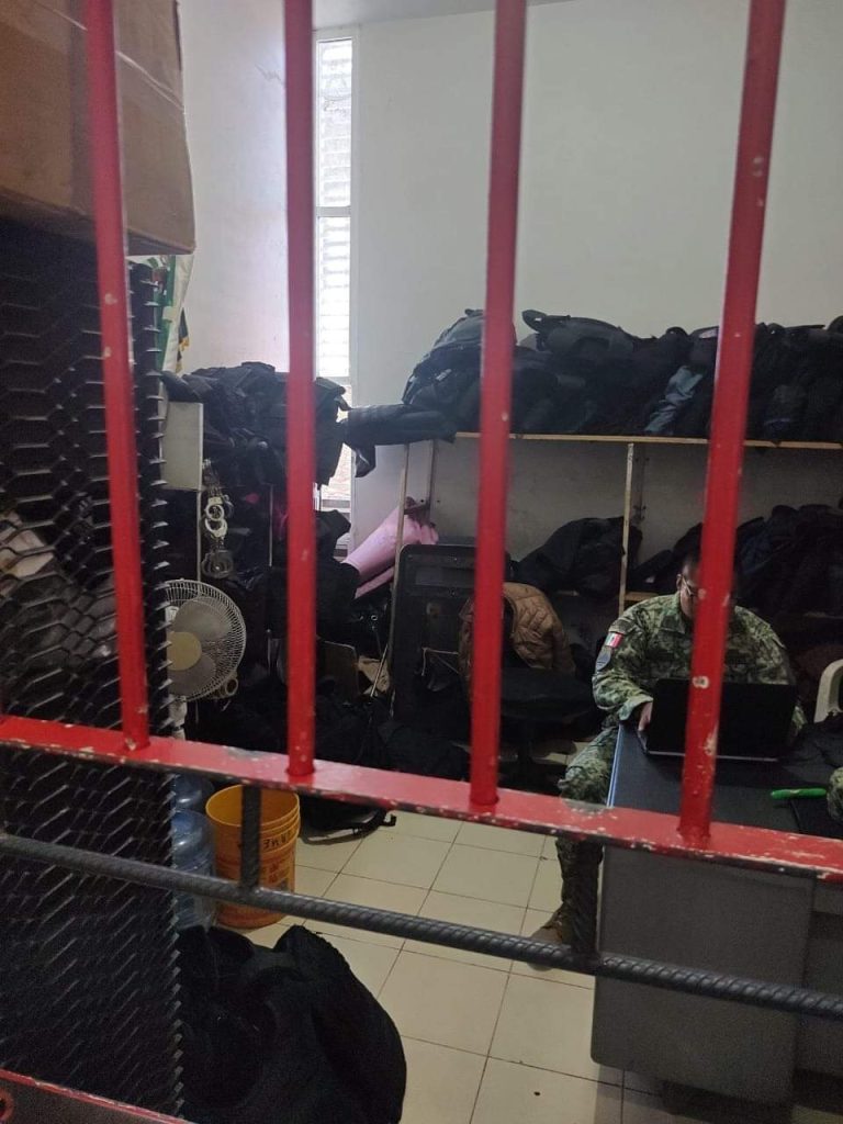 Durante la intervención de los cuerpos de seguridad estatales y federales, se encontraron diversas dosis de droga, cartuchos y un par de réplicas de arma de fuego en el área de jueces calificadores, en posesión de un juez calificador, el cual fue puesto a disposición de la Fiscalía General del Estado, junto con la droga y los objetos localizados.