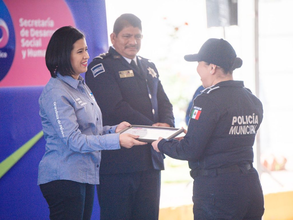 Con la presencia de la Secretaria de Sedeshu, Libia García, así como de Sophia Hueett, Secretaria Ejecutiva del Sistema Estatal de Seguridad Pública del Estado y del Alcalde Goyo Mendoza, fueron entregadas las constancias y reconocimientos de culminación de estos cursos.