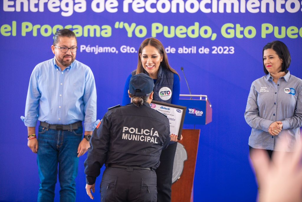 Pénjamo, Guanajuato.- 100 integrantes de la Dirección de Seguridad Pública de Pénjamo, fueron reconocidos por haber completado el curso «Yo Puedo GTO Puede», para fortalecer su visión y proyecto de vida y aplicarlo en el servicio profesional que prestan ante la ciudadanía.