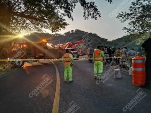 Compostela, Nayarit.- Trágico accidente se registró la noche del sábado sobre la Carretera Federal 200 Compostela – Las Varas, cobrando la vida de al menos 18 personas y más de 20 lesiones entre ellos menores de edad.