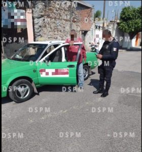 De acuerdo a la información proporcionada por la misma dependencia municipal, durante recorridos de vigilancia que elementos realizaban por la calle Morelos de la cabecera municipal, el señor Brígido “N”, de 60 años, solicitó el apoyo denunciando haber sido asaltado y despojado de su vehículo tipo taxi, a mano de un sujeto con arma blanca.
