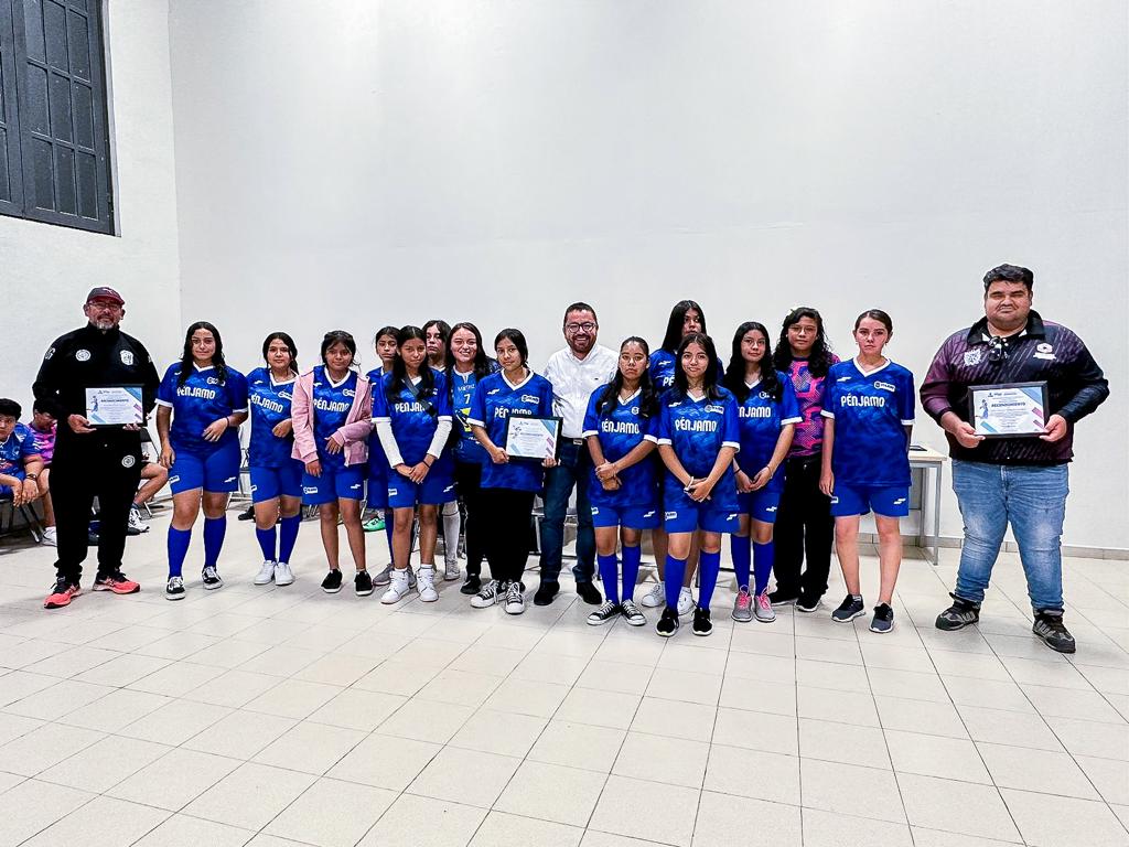 A nombre de la Presidencia Municipal de Pénjamo, el edil entregó reconocimientos a José Carlos Trinidad Ramos, Claudio César Lemus y Alan González Razo, además de todo el equipo varonil y femenil sub 13.