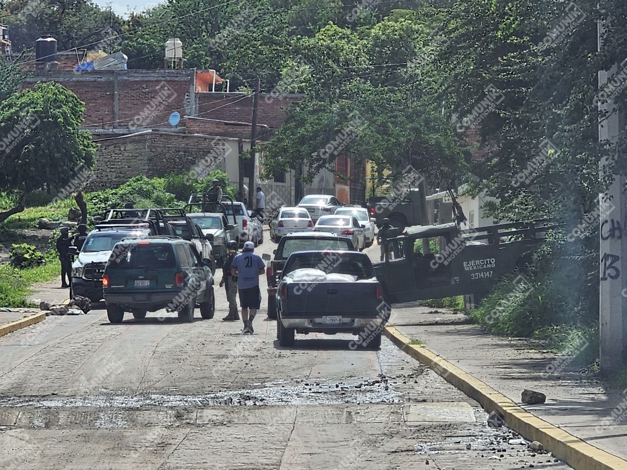Más tarde, cerca de las 15:00 horas, Policías Municipales, Agentes de Investigación Criminal y personal del Ejército Mexicano, realizaron un segundo operativo cerca del ojo de agua de la comunidad de Churipitzeo, donde buscaban a sujetos armados que se habían introducido un domicilio.