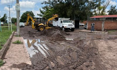 La obra corresponde al colector de agua pluvial que se está instalando en las calles F. Antillón e Ignacio Zaragoza, frente a un centro comercial, en el centro de Cuerámaro.