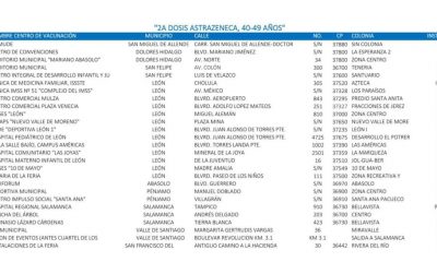 Pénjamo, Gto.- En los municipios de Pénjamo y Abasolo, se aplicará la segunda dosis de la vacuna Anti-covid, para los adultos de 40 a 49 años...