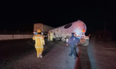 Abasolo, Guanajuato.- Un auto tanque con más de 20 mil litros de gas, se desprendió del tractocamión que lo transportaba y quedó obstaculizando la vialidad sobre...