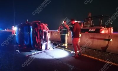 Pénjamo.- Dos personas en aparente estado de ebriedad, volcaron la madrugada de este lunes, sobre el puente vehicular que se ubica en la «Curva de los...