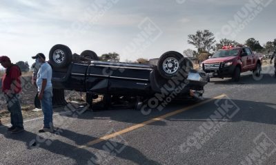Pénjamo.- La tarde de este miércoles se registró la volcadura de una camioneta, frente a la comunidad Cuevas de Morales, en el municipio de Pénjamo. El...