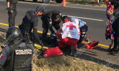 Pénjamo, Guanajuato.- Un motociclista de 42 años de edad, resultó herido de gravedad tras ser arrollado sobre la carretera federal Pénjamo-La Piedad, frente a la comunidad...