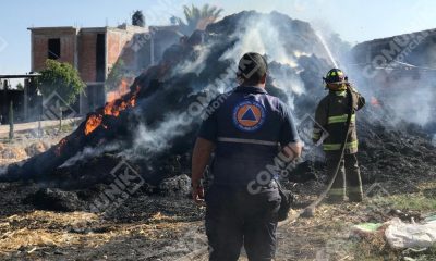 Pénjamo, Guanajuato.- Aproximadamente dos mil pacas de rastrojo, fueron consumidas por el fuego en la comunidad San Juanito de Echeverría, en el municipio de Pénjamo. El...