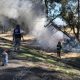 Abasolo, Guanajuato.- Personal de Bomberos de Abasolo, Penjamo e Irapuato, trabajan para combatir el fuego que consume más de 5 hectáreas de pastizales del Parque Acuático...