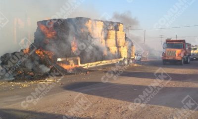 Pénjamo.- En la localidad de Santa Ana Pacueco, se registra el incendio de un tráiler cargado con pacas de rastrojo, justo frente al crucero que conduce...