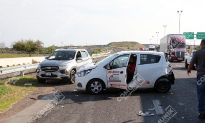 Pénjamo, Guanajuato.- Dos lesionados leves y miles de pesos en perdidas materiales, fue el saldo que dejó un choque múltiple entre 4 vehículos registrados la mañana...