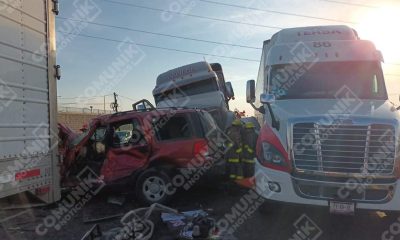 Irapuato, Guanajuato.- Dos muertos y dos lesionados de gravedad, fue el saldo que dejó un choque múltiple entre un automóvil, una camioneta y dos tráiler, sobre...