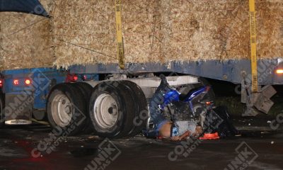 Abasolo, Gto.- Un motociclista murió de manera instantánea, tras chocar contra un tráiler cargado con pacas de rastrojo, en la comunidad San José de González, en...